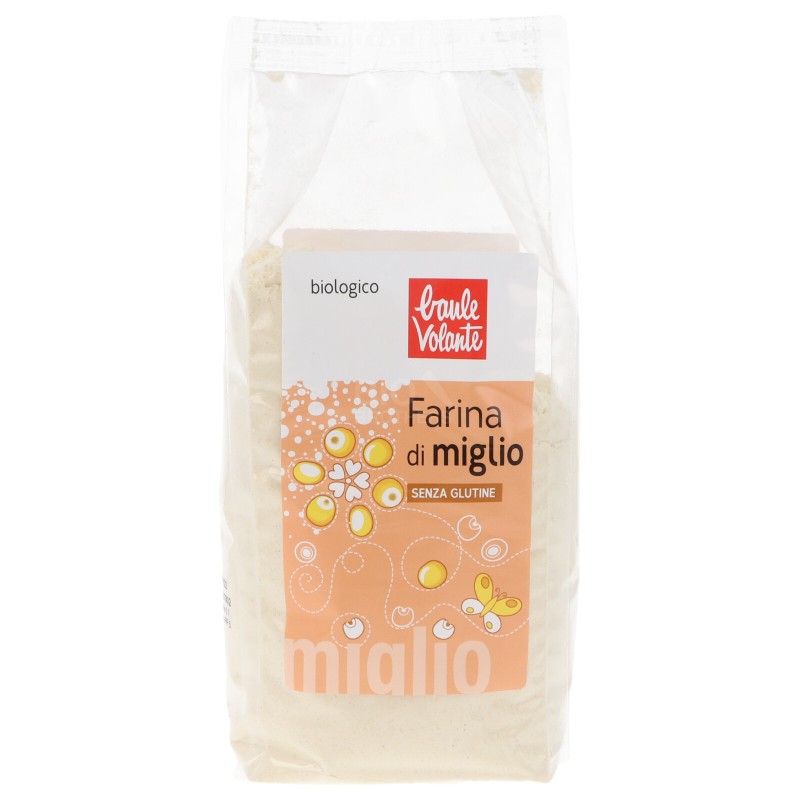 La farina di miglio biologico può essere utilizzata per addensare zuppe o creme, ma può anche sostituire la farina di frumento nella produzione di torte o biscotti. E' naturalmente priva di glutine, quindi per la panificazione va utilizzata in miscela con altre farine.