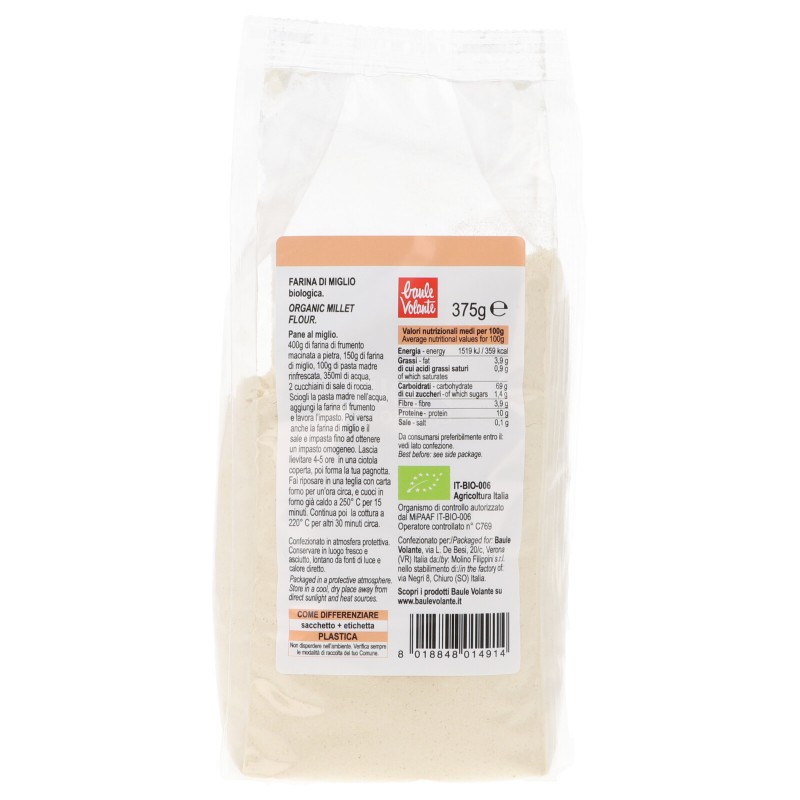 Il consiglio di Biobrothers: la farina di miglio è naturalmente priva di glutine, per ottenere prodotti da forno ben lievitatati va mescolata con farine che lo contengono, come la farina di frumento.