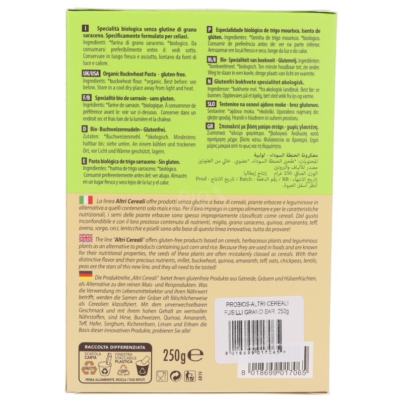 I fusilli di grano saraceno bio sono una specialità senza glutine prodotta in Italia e specificamente formulata per celiaci. Sono ricchi di fibre e proteine; grazie alla particolare lavorazione hanno un'ottima tenuta in cottura ed assorbono molto bene i condimenti.