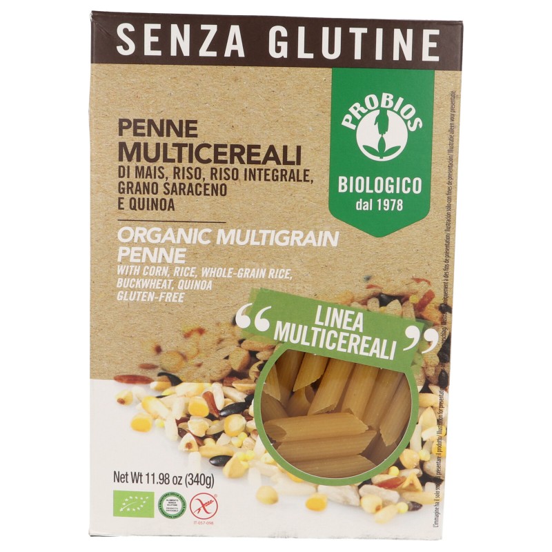 Penne multicereali di mais, riso, riso integrale, grano saraceno e quinoa