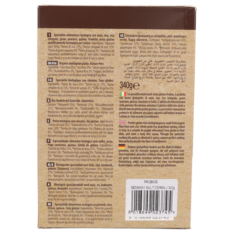 Sedanini multicereali bio di mais,riso,riso integrale grano saraceno e quinoa