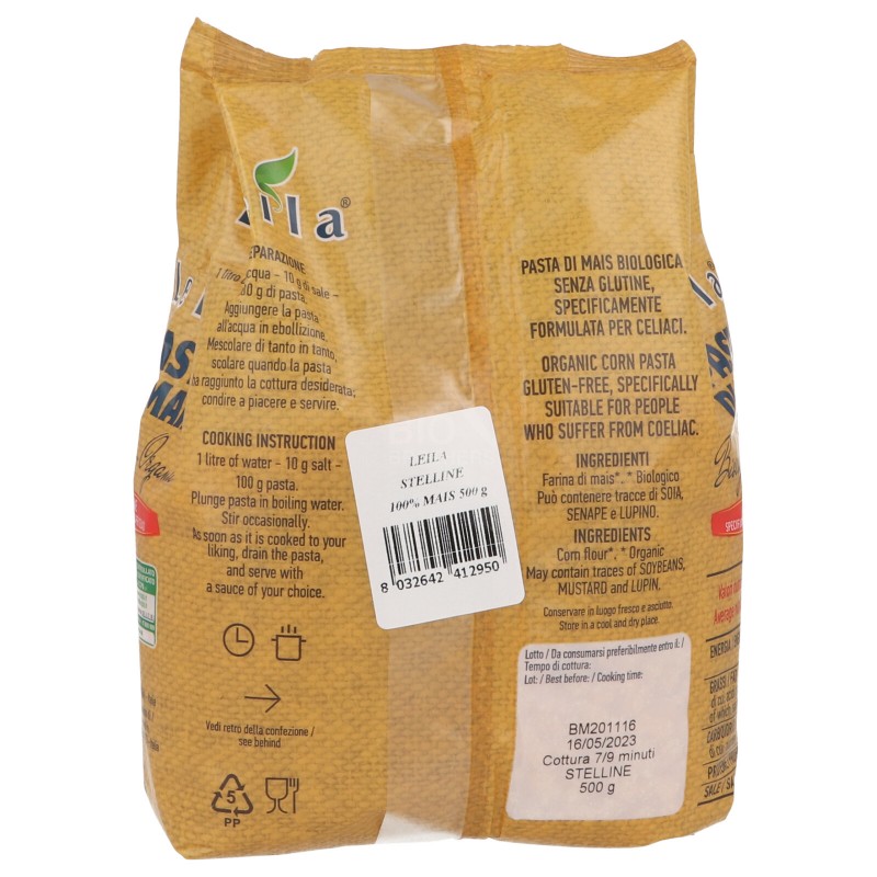 Le stelline di mais biologiche sono una pasta specificamente formulata per celiaci. Sostituiscono ottimamente la pasta di grano duro e per il loro formato si prestano molto bene per arricchire passati, zuppe o minestrine. La trafilatura al bronzo e la lenta essiccatura rendono questa pasta perfetta per assorbire qualsiasi tipo di condimento.