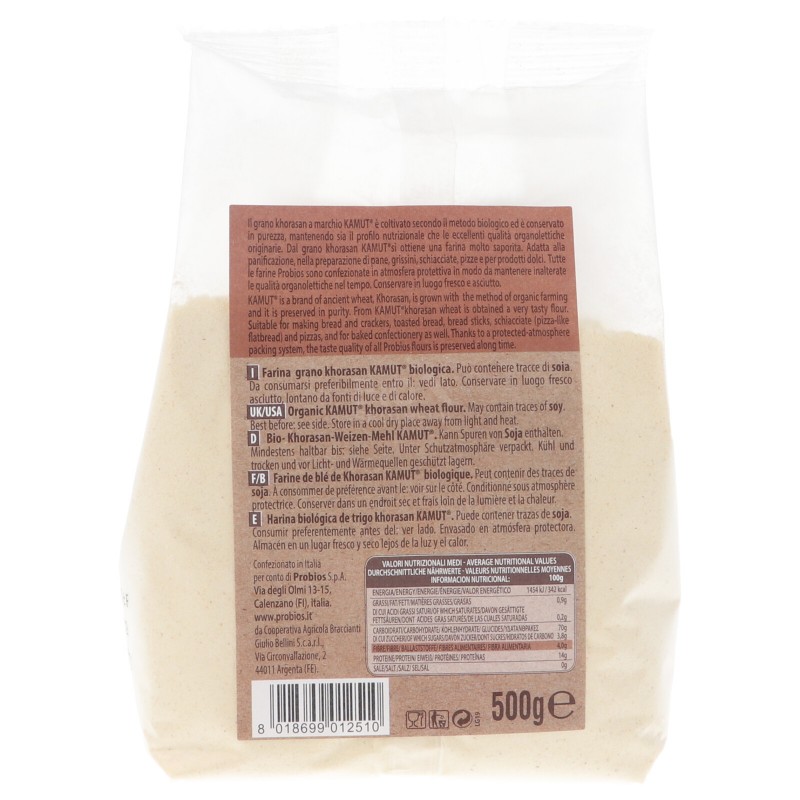 Il grano Khorasan a marchio KAMUT è coltivato secondo i metodi dell'agricoltura biologica e conservato in purezza, mantenendo sia il profilo nutrizionale che le eccellenti proprietà organolettiche originarie. Dal grano khorasan si ottiene una farina molto saporita che ben si presta a sostituire in cucina la più tradizionale farina di frumento in tutte le sue preparazioni.