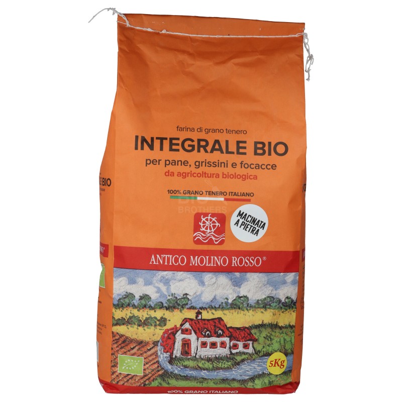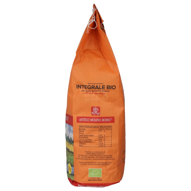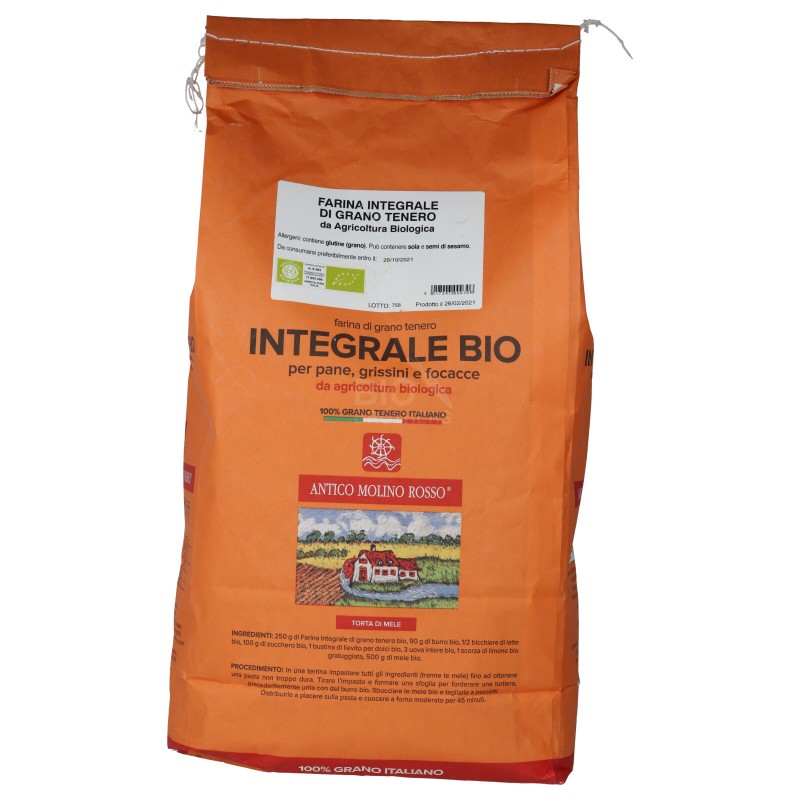 La farina integrale è macinata a pietra da chicchi di grano tenero coltivato in Italia, ed è la farina di grano tenero meno raffinata. Contiene naturalmente crusca e germe di grano e pertanto garantisce un buon apporto di fibre e di proteine vegetali. Adatta per lievitati come pane integrale, pizza integrale o focaccia integrale. E' possibile usarla anche per alcuni dolci integrali.