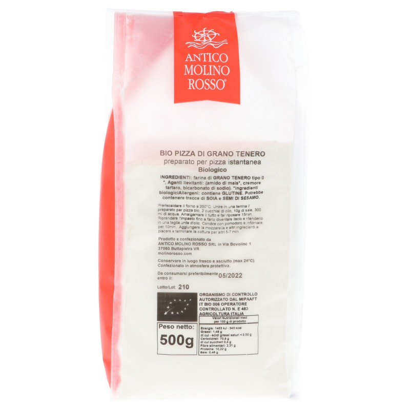 BioPizza di grano tenero bio è un preparato per pizza istantanea. Permette di preparare le tue pizze preferite fatte in casa in meno di mezz'ora perchè lievita mentre cuoce ed è pensato appositamente per le persone intolleranti al lievito di birra o che per altri motivi desiderano escluderlo dalla loro dieta.