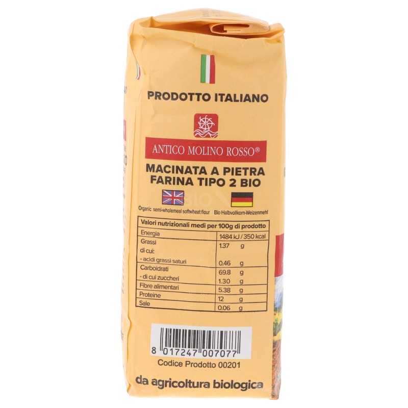 La farina semintegrale tipo 2 macinata a pietra dall'Antico Molino Rosso è una ottima farina neutra multiuso per la tua cucina. Realizzata con grani italiani biologici, è ideale per fare pane, pizza e focacce in casa. Rispetto alla farina integrale contiene meno fibre dovute alla crusca e per questo lievita con più facilità.