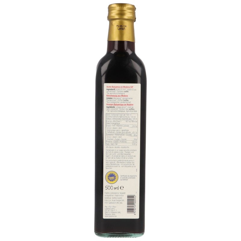 L'aceto balsamico di Modena igp è una delle eccellenze italiane conosciute in tutto il mondo. Condimento realizzato con mosto d'uva e aceto di vino biologici, ha un colore scuro e un gusto leggermente acido, molto aromatico ma anche dolce. Tipicamente l'aceto balsamico di Modena igp si usa su verdure crude, con la carne, per decorare piatti o in dessert ricercati.