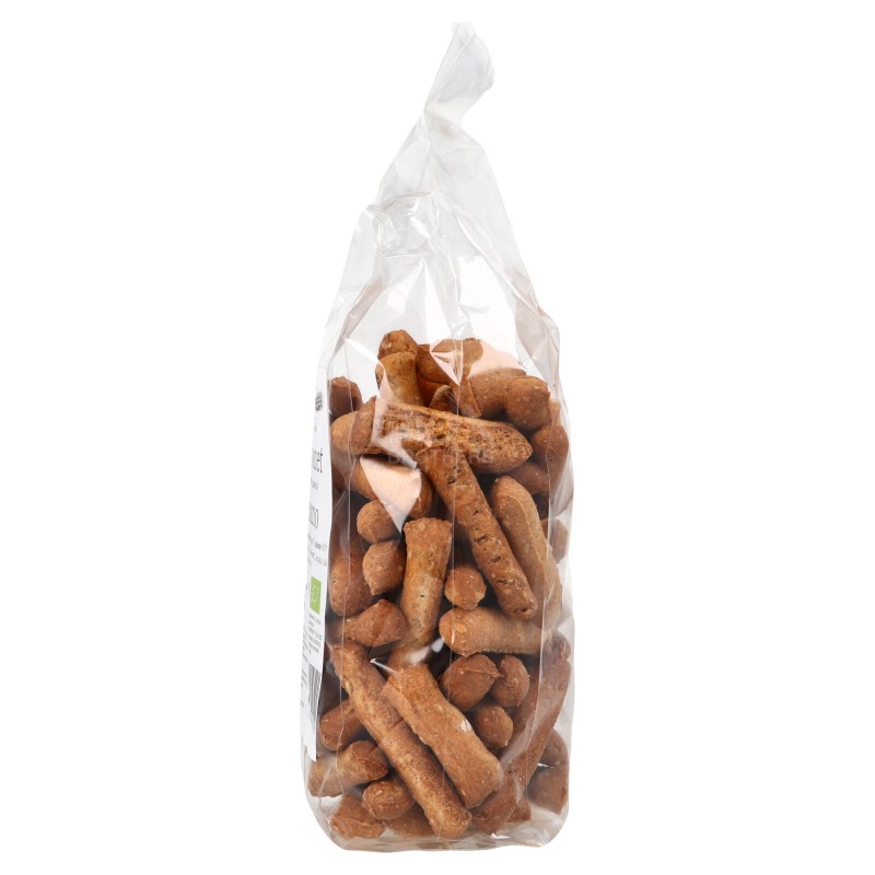 Ingredienti: farina di frumento tipo2*, semi di sesamo*8%, olio extra vergine di oliva*, malto d'orzo*, acqua, sale marino integrale, lievito di birra.