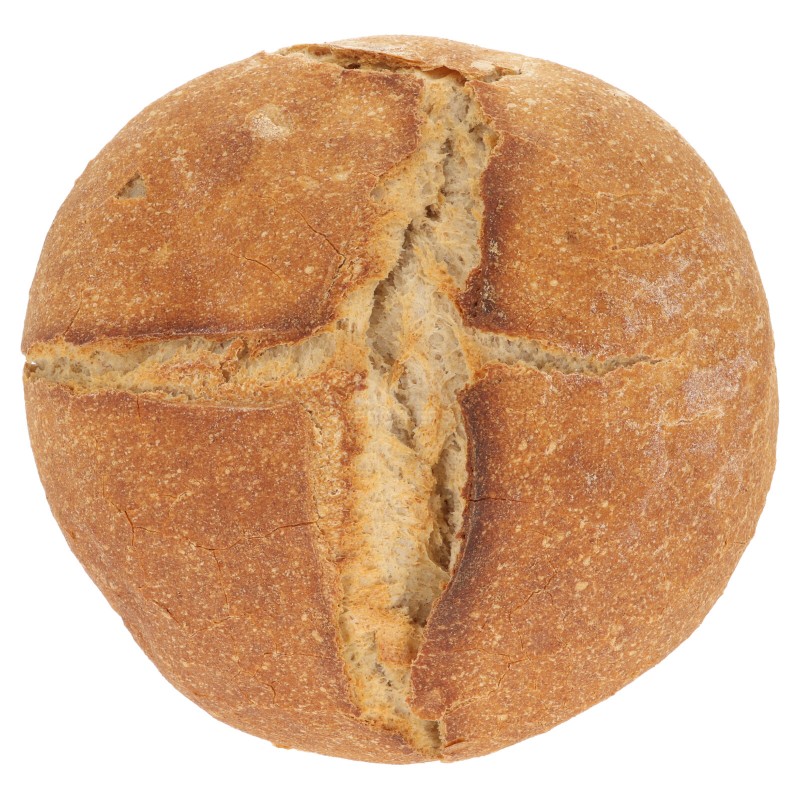 Pagnotta semintegrale Tipo 2 con pasta madre. Prodotta con la miglior farina di frumento semi-integrale macinata a pietra e con pasta madre fresca autoprodotta. Si tratta di un pane artigianale di alta qualità lavorato a mano, a lievitazione acido-lattica e cotto in forno a legna. Ricetta senza compromessi: senza grassi aggiunti, con acqua di fonte, e sale marino integrale. El pan de Toni è il vero pane semintegrale a pasta madre. Pane spedito fresco nei giorni indicati. Se correttamente conservato rimane morbido fino ad una settimana. Il prezzo è espresso al kg. Prodotto venduto a peso. Una pagnotta intera di pane semiintegrale pesa 1kg circa, pertanto la quantità minima acquistabile è 1 (kg). Prodotto soggetto a calo naturale del peso.