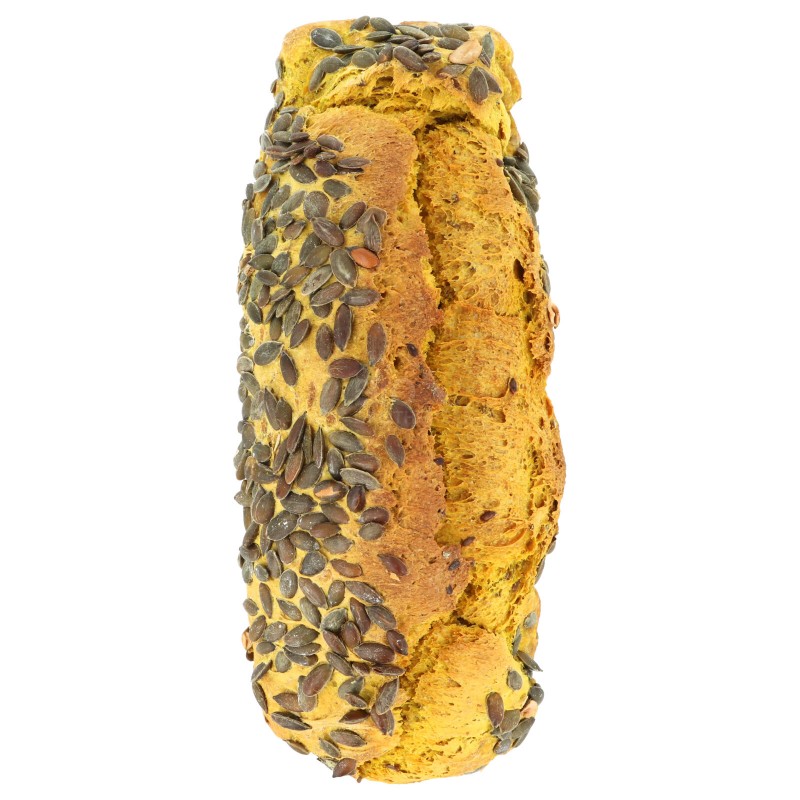 Il consiglio di Biobrothers: Scopri il gusto di questo pane con curcuma e semi. Il suo colore giallo intenso abbellisce la tavola imbandita. Ideale per panini o per accompagnare i pasti.